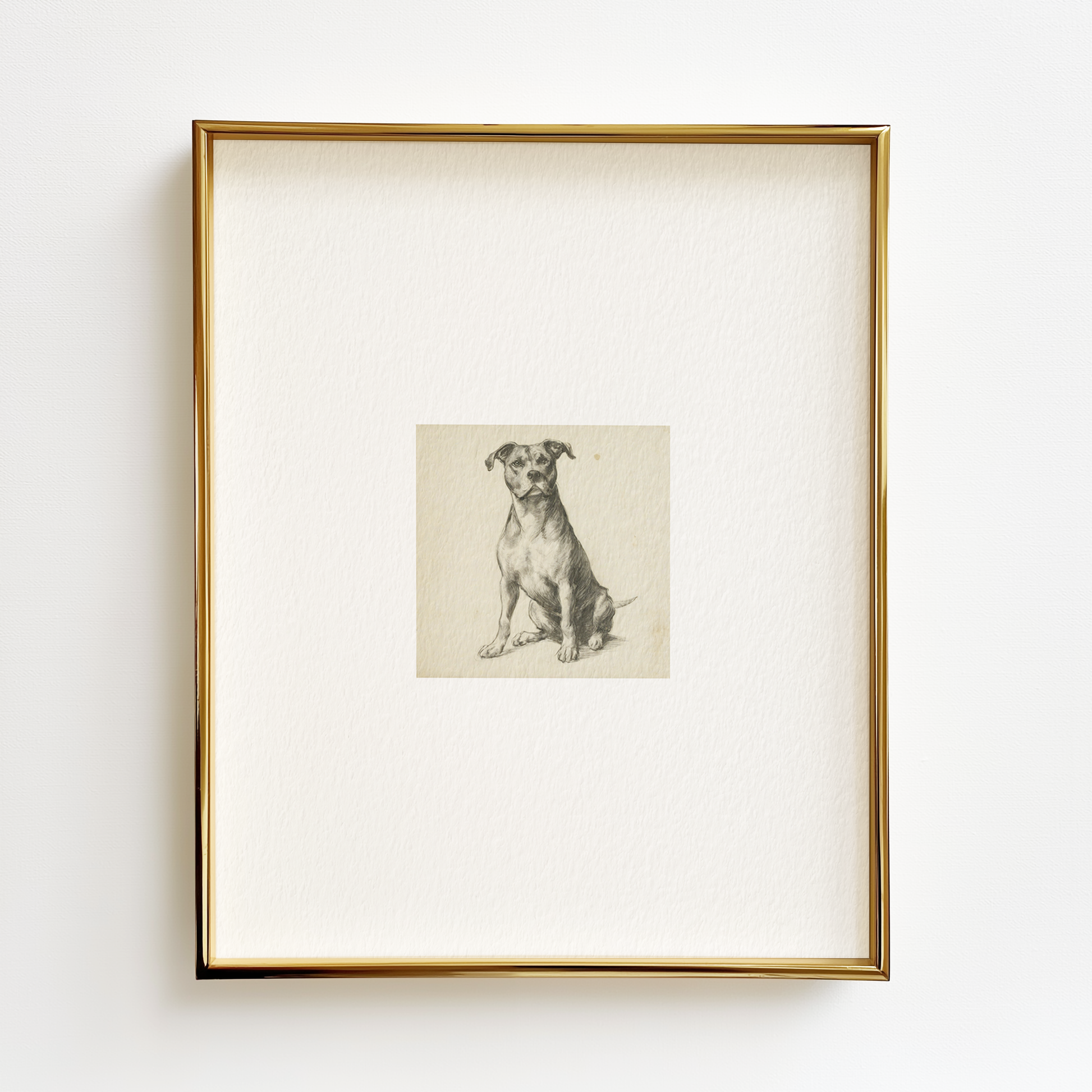 Antique style dog sketch printed on Somerset fine art paper. A cherished choice of artists and printmakers since the 1700s, this 100% cotton rag, acid-free paper highlights rich colors and gentle textures. Our giclee printers use aqueous pigment inks that will resist fading and help your print last for generations. With its soft palette and minimalist detail, this classic artwork adds a sophisticated touch to any gallery wall, entryway, or bedroom. Whether you're curating vintage art or searching for the perfect dog lover gift, this print will bring warmth and charm to your space.
