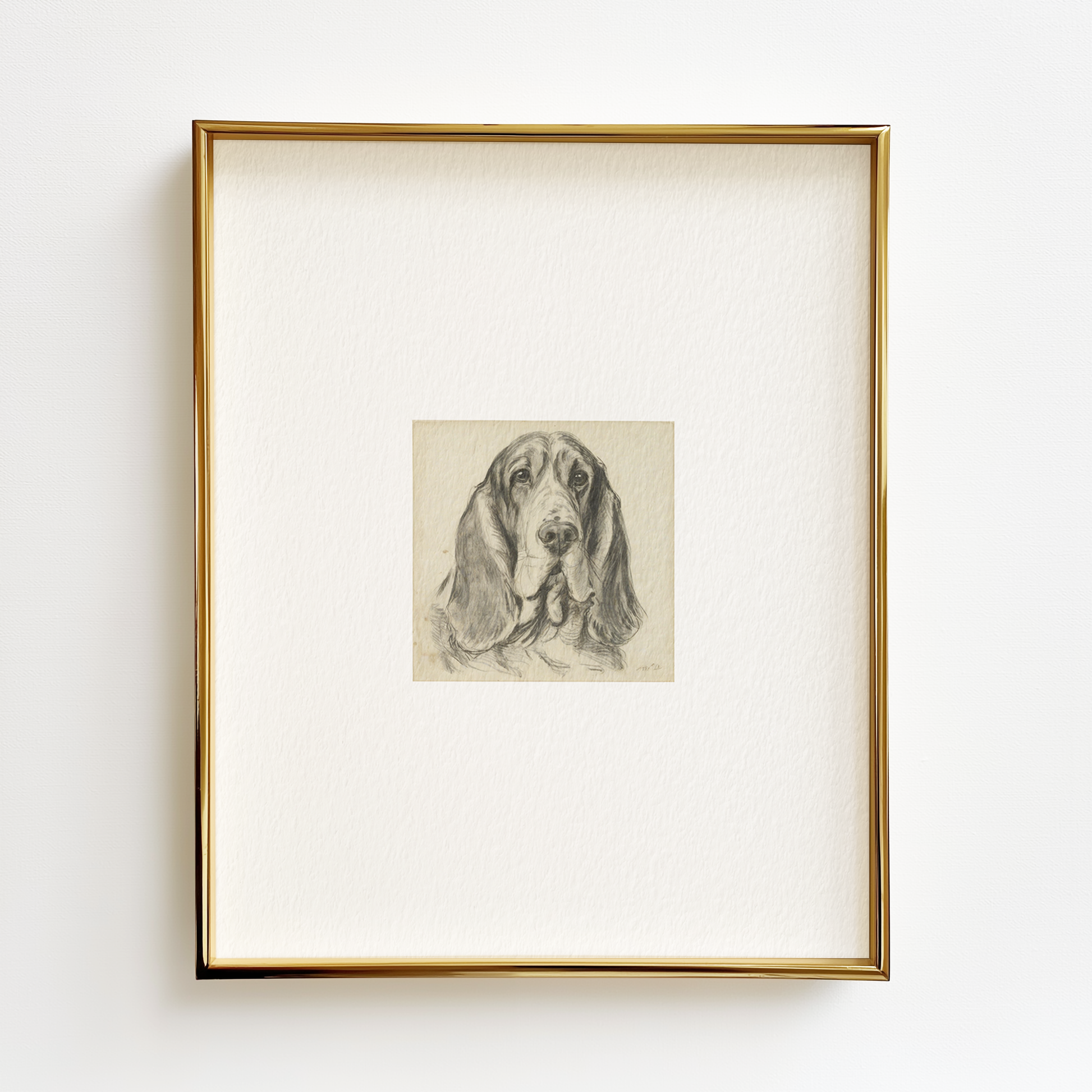 Antique style dog sketch printed on Somerset fine art paper. A cherished choice of artists and printmakers since the 1700s, this 100% cotton rag, acid-free paper highlights rich colors and gentle textures. Our giclee printers use aqueous pigment inks that will resist fading and help your print last for generations. With its soft palette and minimalist detail, this classic artwork adds a sophisticated touch to any gallery wall, entryway, or bedroom. Whether you're curating vintage art or searching for the perfect dog lover gift, this print will bring warmth and charm to your space.