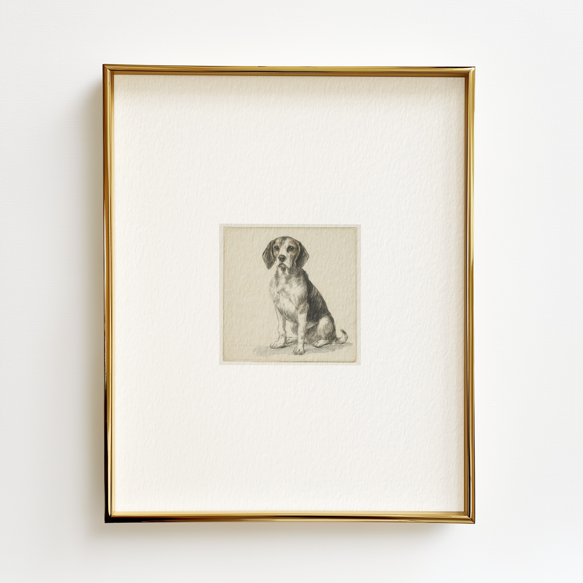 Antique style dog sketch printed on Somerset fine art paper. A cherished choice of artists and printmakers since the 1700s, this 100% cotton rag, acid-free paper highlights rich colors and gentle textures. Our giclee printers use aqueous pigment inks that will resist fading and help your print last for generations. With its soft palette and minimalist detail, this classic artwork adds a sophisticated touch to any gallery wall, entryway, or bedroom. Whether you're curating vintage art or searching for the perfect dog lover gift, this print will bring warmth and charm to your space.