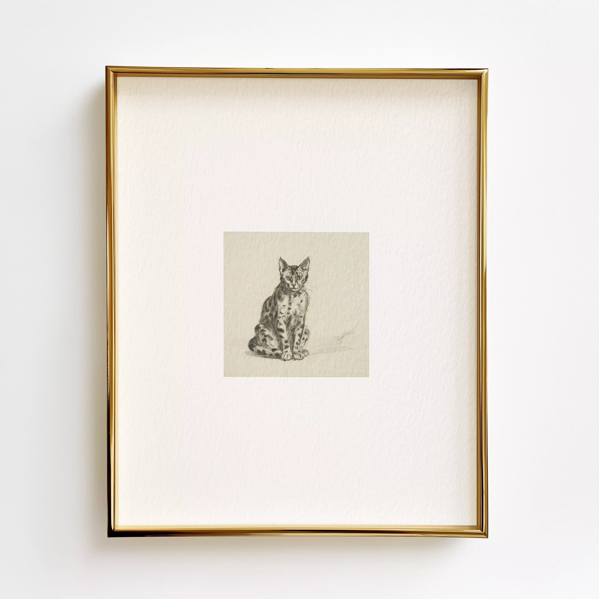 Antique style cat sketch printed on Somerset fine art paper. A cherished choice of artists and printmakers since the 1700s, this 100% cotton rag, acid-free paper highlights rich colors and gentle textures. Our giclee printers use aqueous pigment inks that will resist fading and help your print last for generations. With its soft palette and minimalist detail, this classic artwork adds a sophisticated touch to any gallery wall, entryway, or bedroom. Whether you're curating vintage art or searching for the perfect cat lover gift, this print will bring warmth and charm to your space.