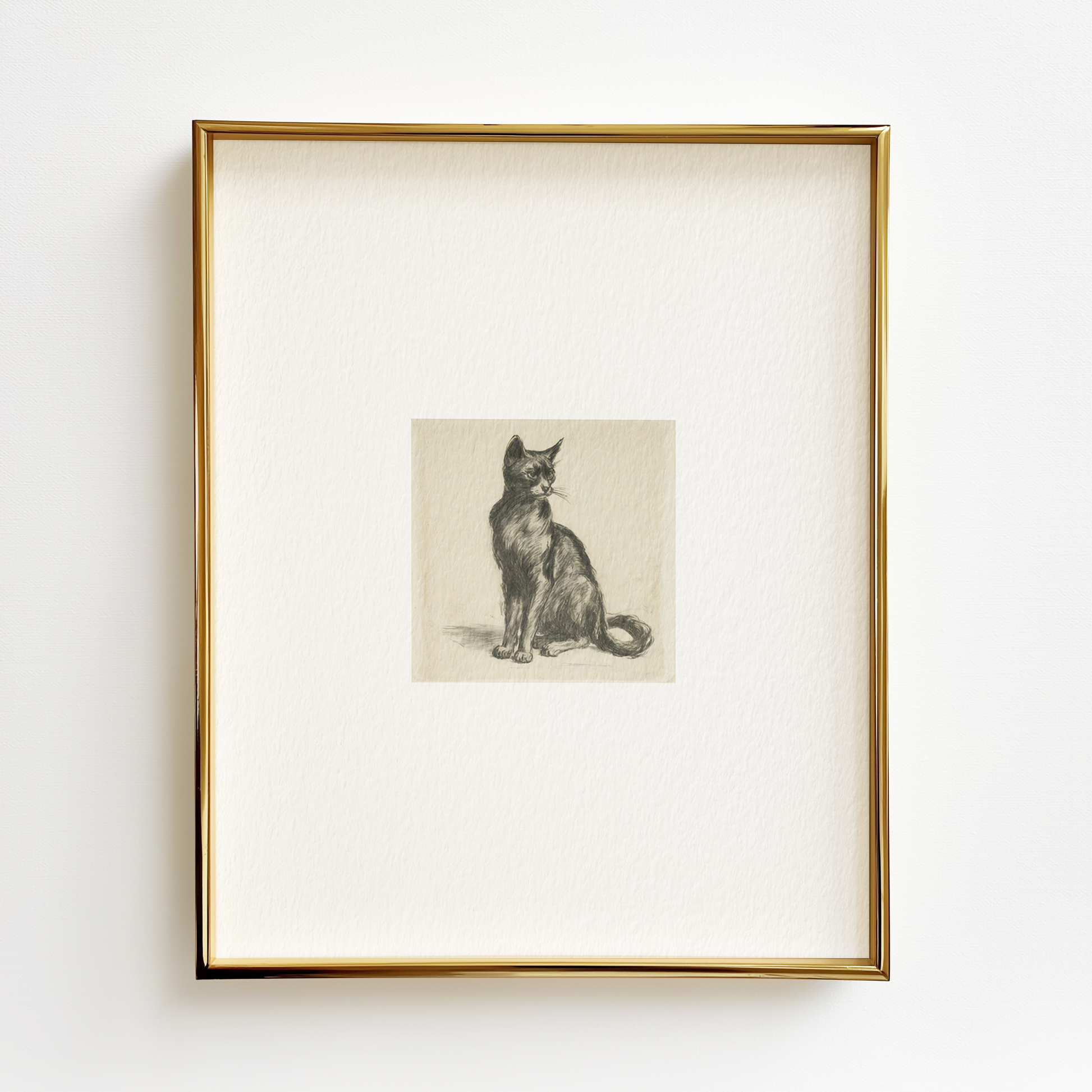 Antique style cat sketch printed on Somerset fine art paper. A cherished choice of artists and printmakers since the 1700s, this 100% cotton rag, acid-free paper highlights rich colors and gentle textures. Our giclee printers use aqueous pigment inks that will resist fading and help your print last for generations. With its soft palette and minimalist detail, this classic artwork adds a sophisticated touch to any gallery wall, entryway, or bedroom. Whether you're curating vintage art or searching for the perfect cat lover gift, this print will bring warmth and charm to your space.