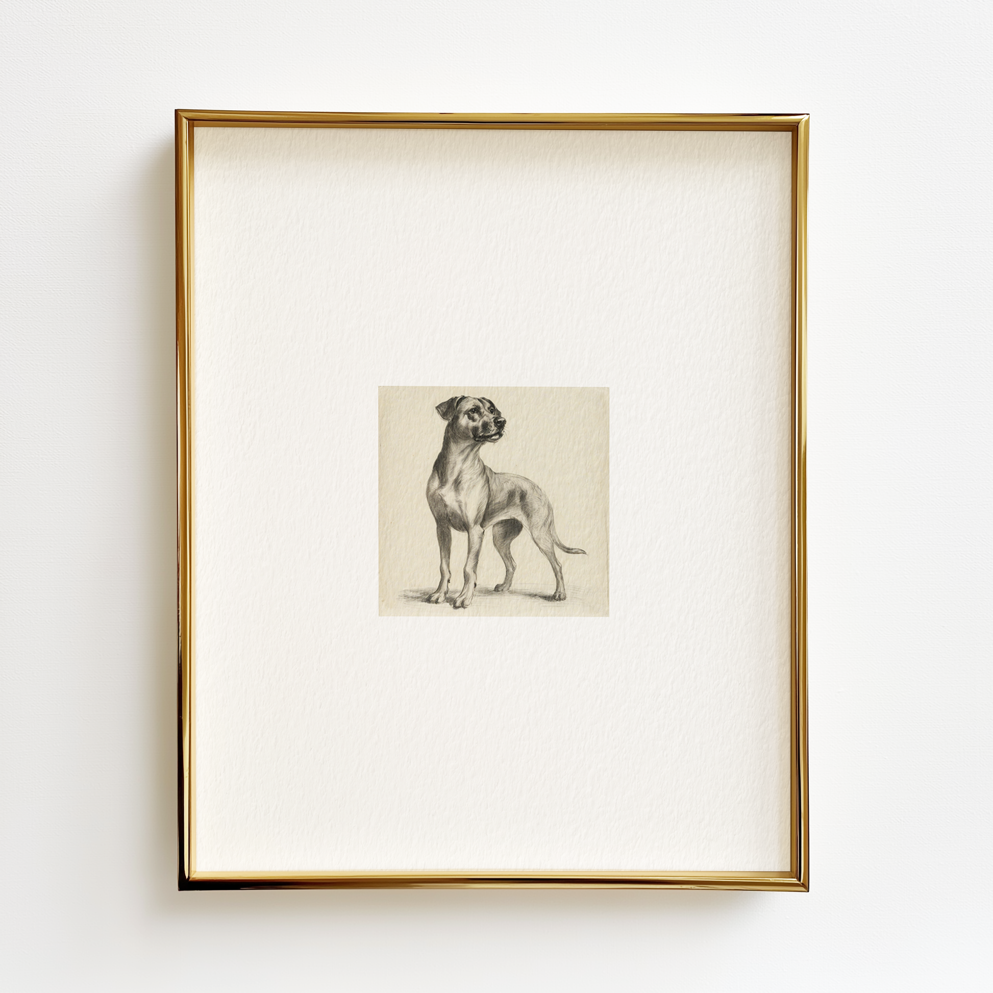 Antique style dog sketch printed on Somerset fine art paper. A cherished choice of artists and printmakers since the 1700s, this 100% cotton rag, acid-free paper highlights rich colors and gentle textures. Our giclee printers use aqueous pigment inks that will resist fading and help your print last for generations. With its soft palette and minimalist detail, this classic artwork adds a sophisticated touch to any gallery wall, entryway, or bedroom. Whether you're curating vintage art or searching for the perfect dog lover gift, this print will bring warmth and charm to your space.