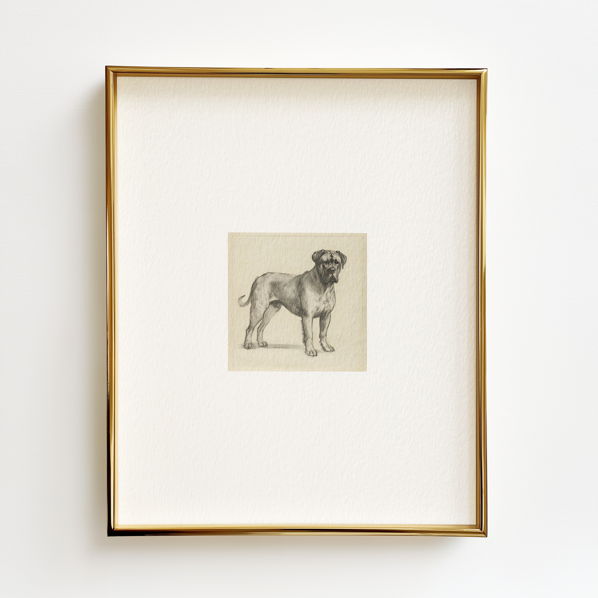 Antique style dog sketch printed on Somerset fine art paper. A cherished choice of artists and printmakers since the 1700s, this 100% cotton rag, acid-free paper highlights rich colors and gentle textures. Our giclee printers use aqueous pigment inks that will resist fading and help your print last for generations. With its soft palette and minimalist detail, this classic artwork adds a sophisticated touch to any gallery wall, entryway, or bedroom. Whether you're curating vintage art or searching for the perfect dog lover gift, this print will bring warmth and charm to your space.