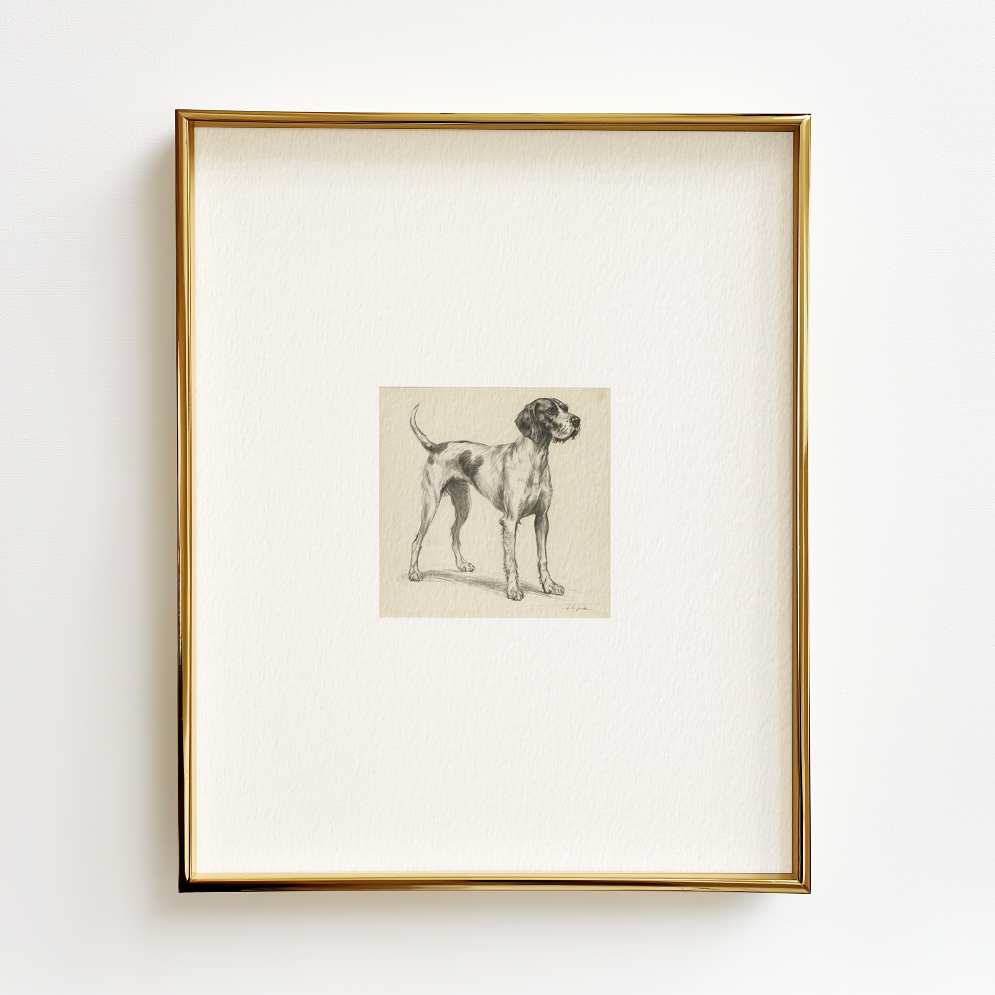 Antique style dog sketch printed on Somerset fine art paper. A cherished choice of artists and printmakers since the 1700s, this 100% cotton rag, acid-free paper highlights rich colors and gentle textures. Our giclee printers use aqueous pigment inks that will resist fading and help your print last for generations. With its soft palette and minimalist detail, this classic artwork adds a sophisticated touch to any gallery wall, entryway, or bedroom. Whether you're curating vintage art or searching for the perfect dog lover gift, this print will bring warmth and charm to your space.