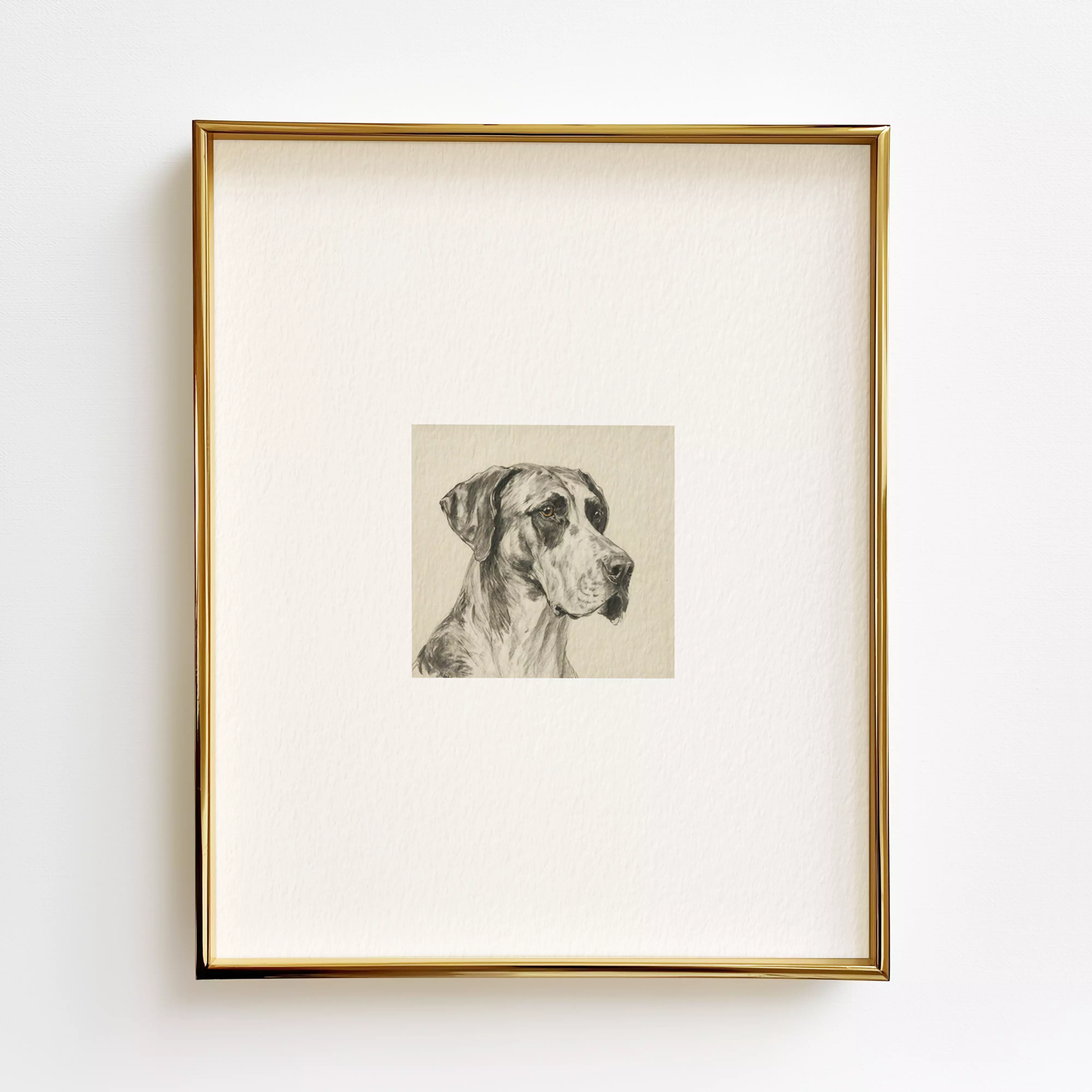 Antique style dog sketch printed on Somerset fine art paper. A cherished choice of artists and printmakers since the 1700s, this 100% cotton rag, acid-free paper highlights rich colors and gentle textures. Our giclee printers use aqueous pigment inks that will resist fading and help your print last for generations. With its soft palette and minimalist detail, this classic artwork adds a sophisticated touch to any gallery wall, entryway, or bedroom. Whether you're curating vintage art or searching for the perfect dog lover gift, this print will bring warmth and charm to your space.