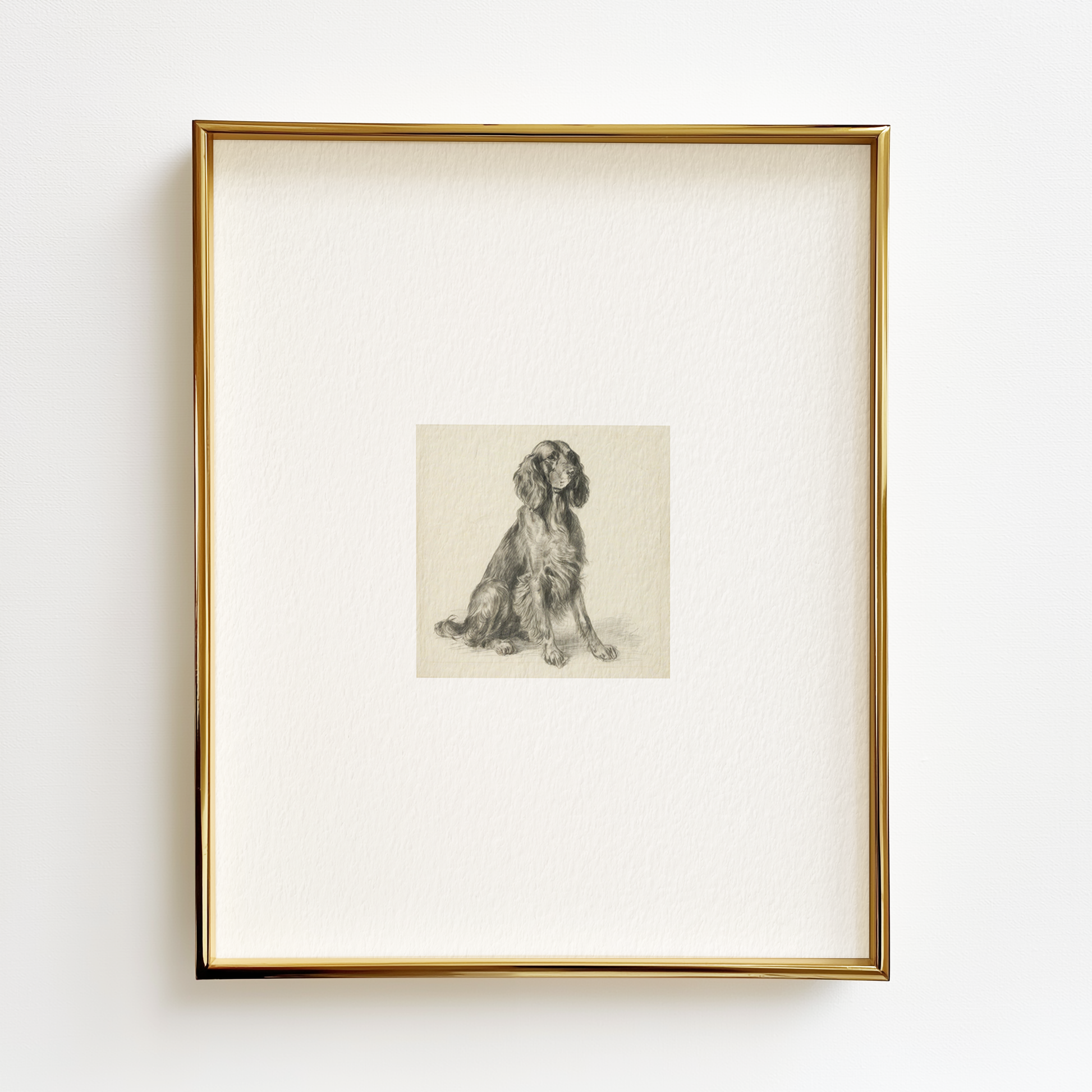 Antique style dog sketch printed on Somerset fine art paper. A cherished choice of artists and printmakers since the 1700s, this 100% cotton rag, acid-free paper highlights rich colors and gentle textures. Our giclee printers use aqueous pigment inks that will resist fading and help your print last for generations. With its soft palette and minimalist detail, this classic artwork adds a sophisticated touch to any gallery wall, entryway, or bedroom. Whether you're curating vintage art or searching for the perfect dog lover gift, this print will bring warmth and charm to your space.