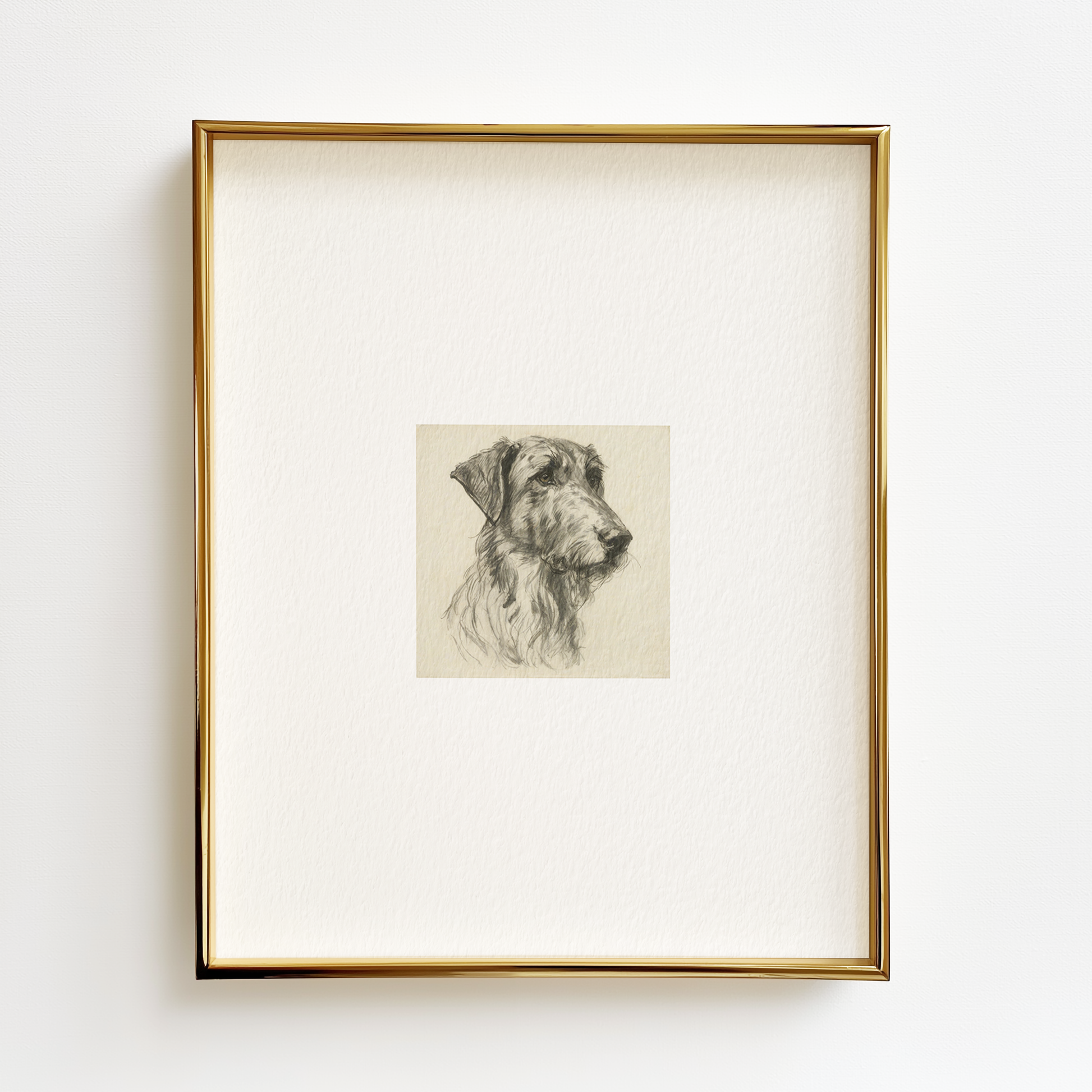 Antique style dog sketch printed on Somerset fine art paper. A cherished choice of artists and printmakers since the 1700s, this 100% cotton rag, acid-free paper highlights rich colors and gentle textures. Our giclee printers use aqueous pigment inks that will resist fading and help your print last for generations. With its soft palette and minimalist detail, this classic artwork adds a sophisticated touch to any gallery wall, entryway, or bedroom. Whether you're curating vintage art or searching for the perfect dog lover gift, this print will bring warmth and charm to your space.