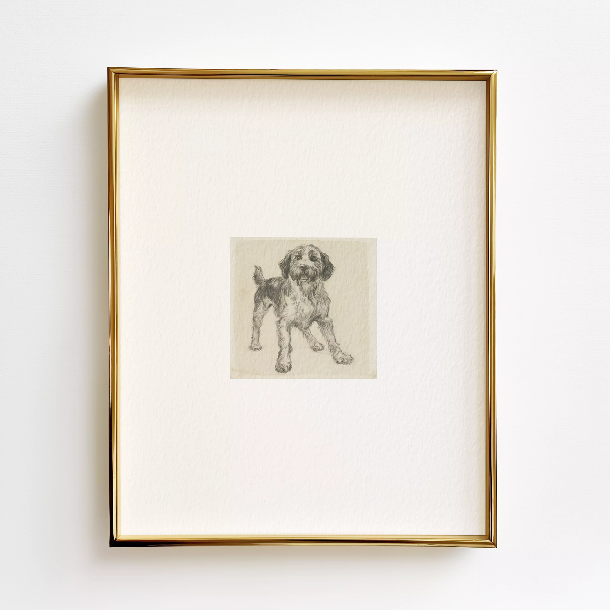 Antique style dog sketch printed on Somerset fine art paper. A cherished choice of artists and printmakers since the 1700s, this 100% cotton rag, acid-free paper highlights rich colors and gentle textures. Our giclee printers use aqueous pigment inks that will resist fading and help your print last for generations. With its soft palette and minimalist detail, this classic artwork adds a sophisticated touch to any gallery wall, entryway, or bedroom. Whether you're curating vintage art or searching for the perfect dog lover gift, this print will bring warmth and charm to your space.