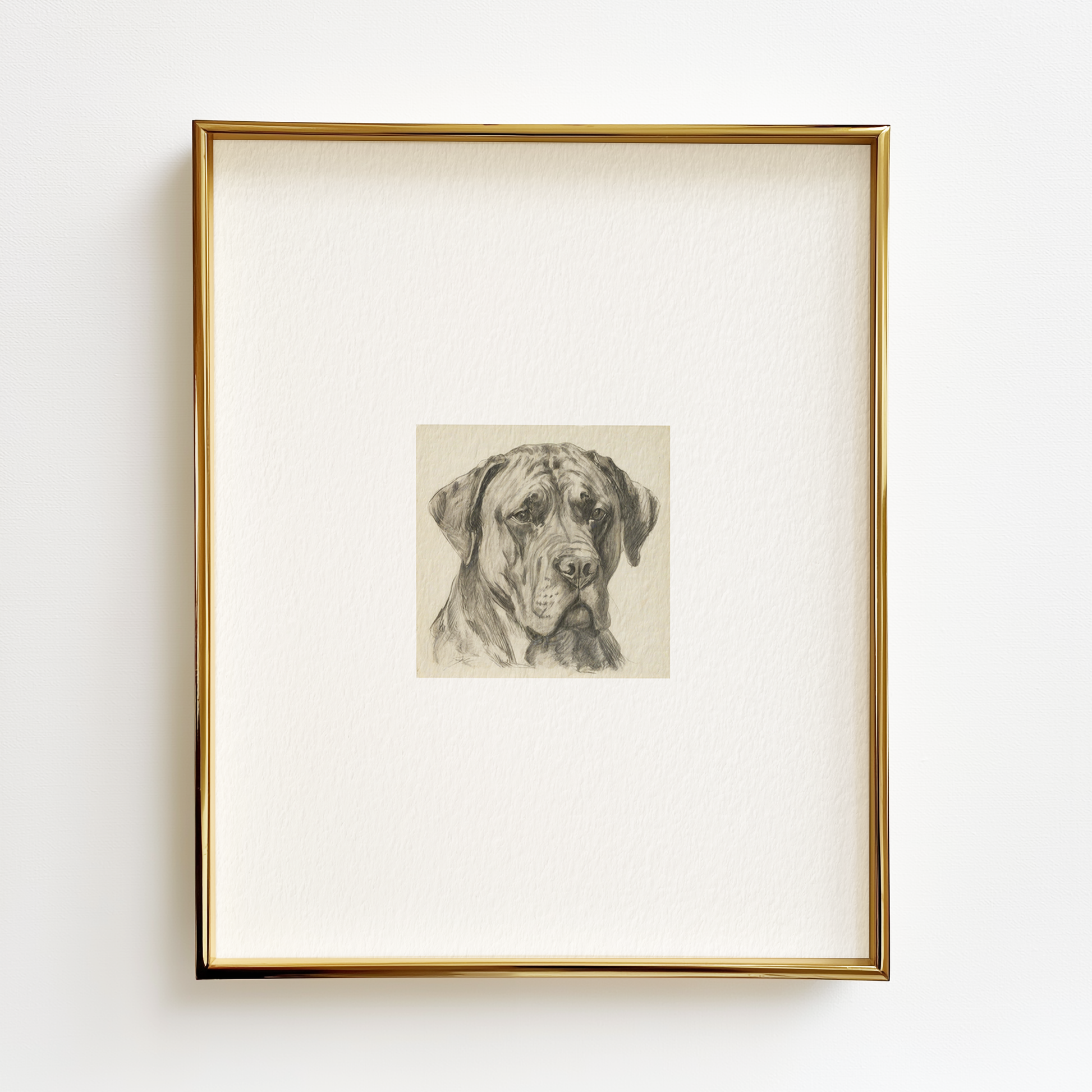 Antique style dog sketch printed on Somerset fine art paper. A cherished choice of artists and printmakers since the 1700s, this 100% cotton rag, acid-free paper highlights rich colors and gentle textures. Our giclee printers use aqueous pigment inks that will resist fading and help your print last for generations. With its soft palette and minimalist detail, this classic artwork adds a sophisticated touch to any gallery wall, entryway, or bedroom. Whether you're curating vintage art or searching for the perfect dog lover gift, this print will bring warmth and charm to your space.