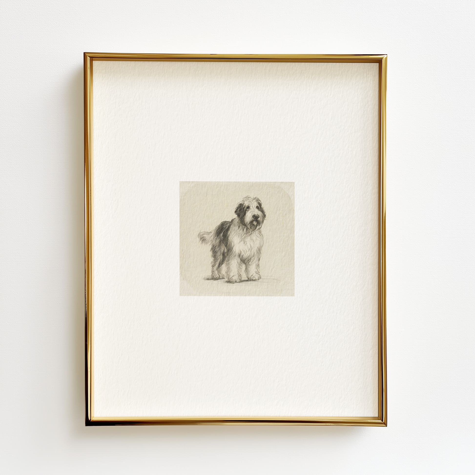 Antique style dog sketch printed on Somerset fine art paper. A cherished choice of artists and printmakers since the 1700s, this 100% cotton rag, acid-free paper highlights rich colors and gentle textures. Our giclee printers use aqueous pigment inks that will resist fading and help your print last for generations. With its soft palette and minimalist detail, this classic artwork adds a sophisticated touch to any gallery wall, entryway, or bedroom. Whether you're curating vintage art or searching for the perfect dog lover gift, this print will bring warmth and charm to your space.