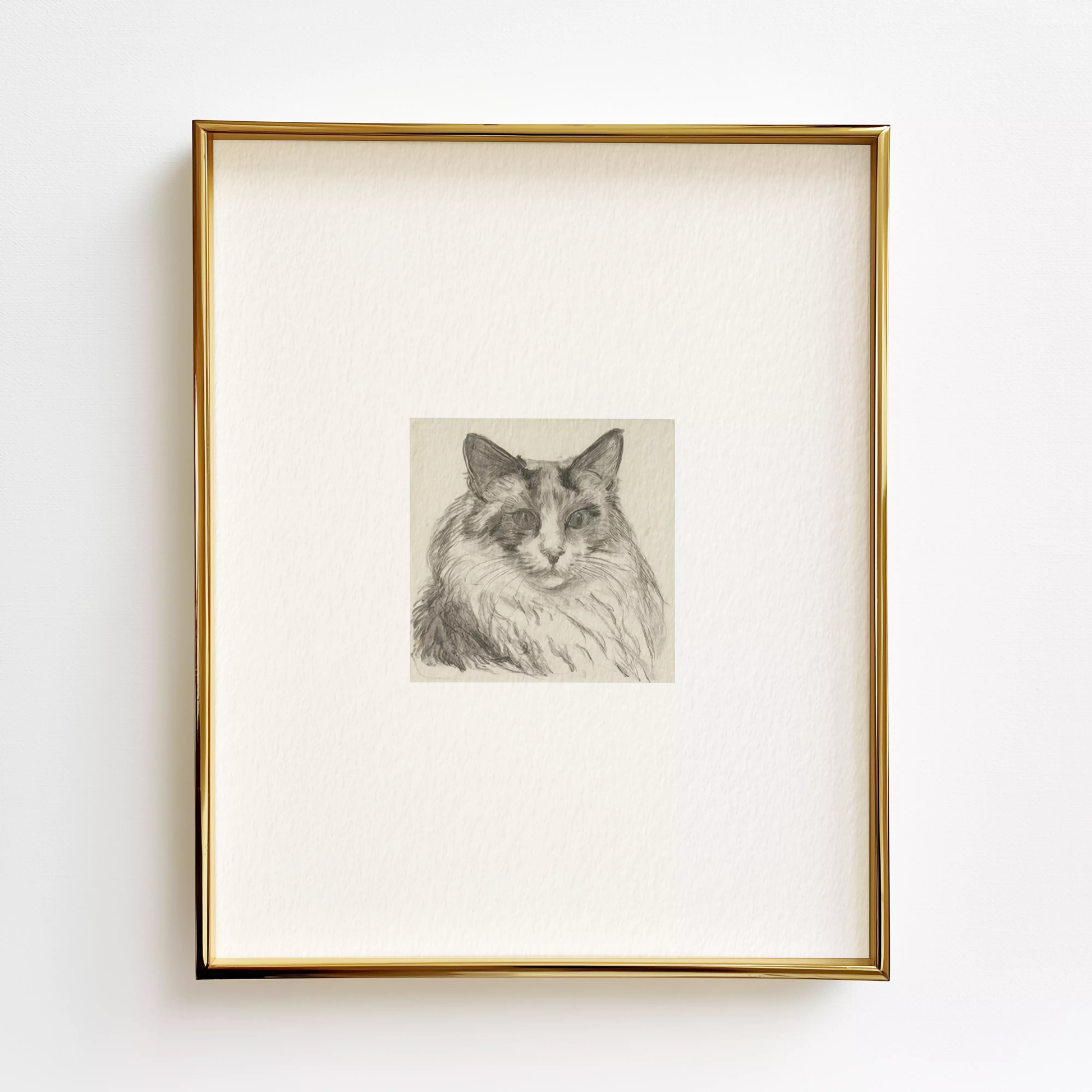 Antique style cat sketch printed on Somerset fine art paper. A cherished choice of artists and printmakers since the 1700s, this 100% cotton rag, acid-free paper highlights rich colors and gentle textures. Our giclee printers use aqueous pigment inks that will resist fading and help your print last for generations. With its soft palette and minimalist detail, this classic artwork adds a sophisticated touch to any gallery wall, entryway, or bedroom. Whether you're curating vintage art or searching for the perfect cat lover gift, this print will bring warmth and charm to your space.