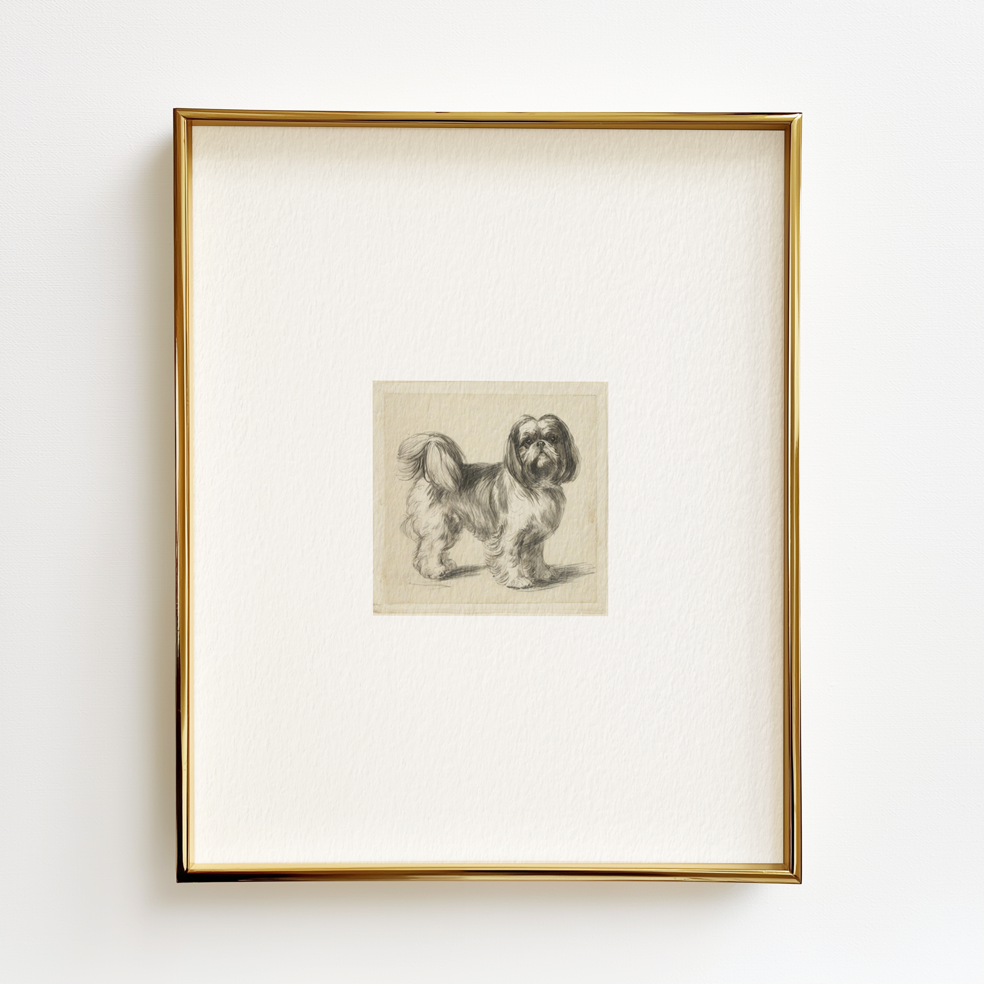 Antique style dog sketch printed on Somerset fine art paper. A cherished choice of artists and printmakers since the 1700s, this 100% cotton rag, acid-free paper highlights rich colors and gentle textures. Our giclee printers use aqueous pigment inks that will resist fading and help your print last for generations. With its soft palette and minimalist detail, this classic artwork adds a sophisticated touch to any gallery wall, entryway, or bedroom. Whether you're curating vintage art or searching for the perfect dog lover gift, this print will bring warmth and charm to your space.