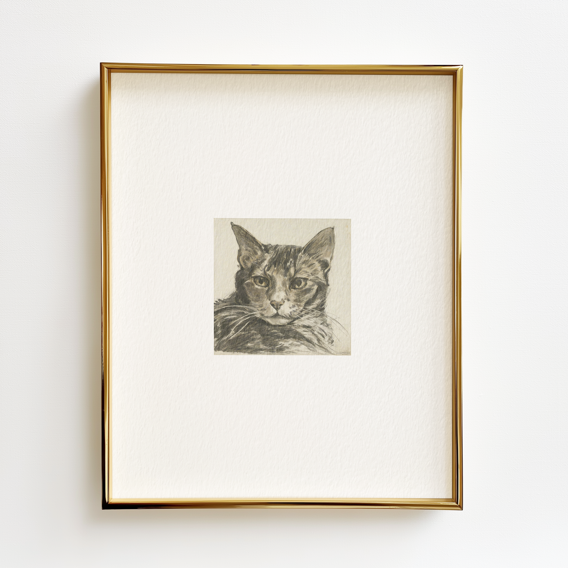 Antique style cat sketch printed on Somerset fine art paper. A cherished choice of artists and printmakers since the 1700s, this 100% cotton rag, acid-free paper highlights rich colors and gentle textures. Our giclee printers use aqueous pigment inks that will resist fading and help your print last for generations. With its soft palette and minimalist detail, this classic artwork adds a sophisticated touch to any gallery wall, entryway, or bedroom. Whether you're curating vintage art or searching for the perfect cat lover gift, this print will bring warmth and charm to your space.