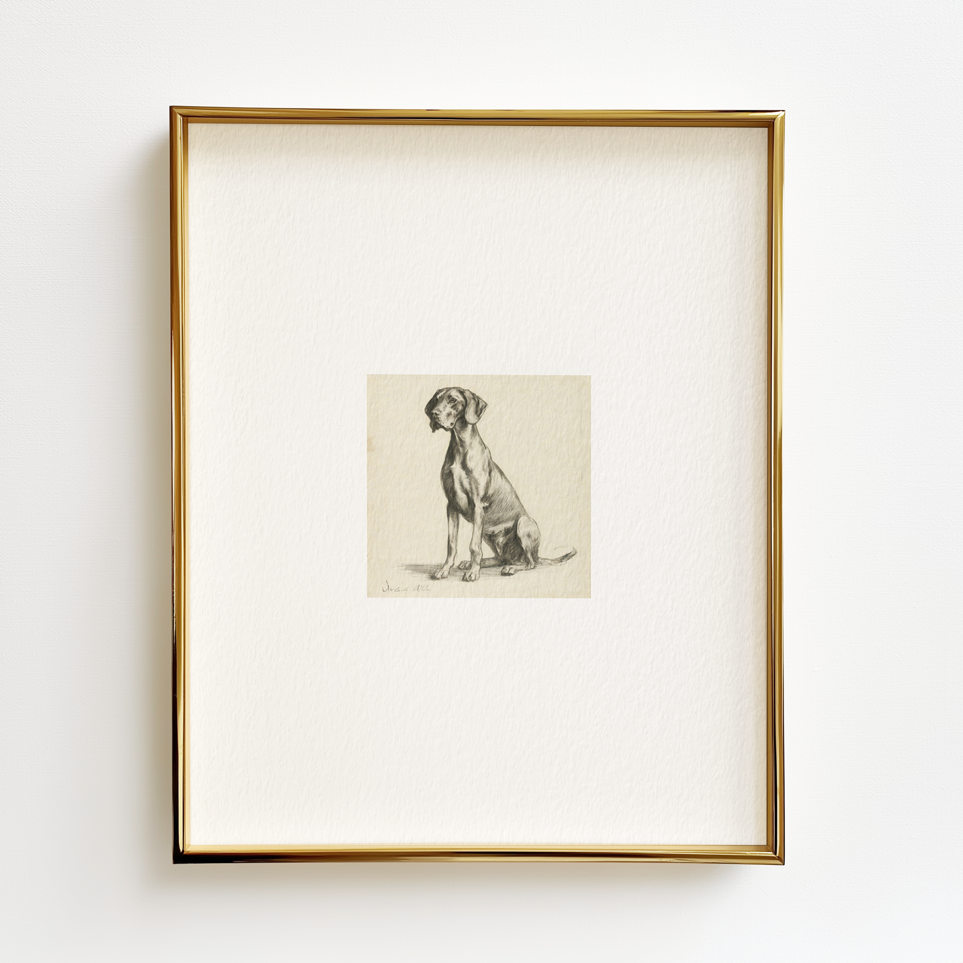 Antique style dog sketch printed on Somerset fine art paper. A cherished choice of artists and printmakers since the 1700s, this 100% cotton rag, acid-free paper highlights rich colors and gentle textures. Our giclee printers use aqueous pigment inks that will resist fading and help your print last for generations. With its soft palette and minimalist detail, this classic artwork adds a sophisticated touch to any gallery wall, entryway, or bedroom. Whether you're curating vintage art or searching for the perfect dog lover gift, this print will bring warmth and charm to your space.